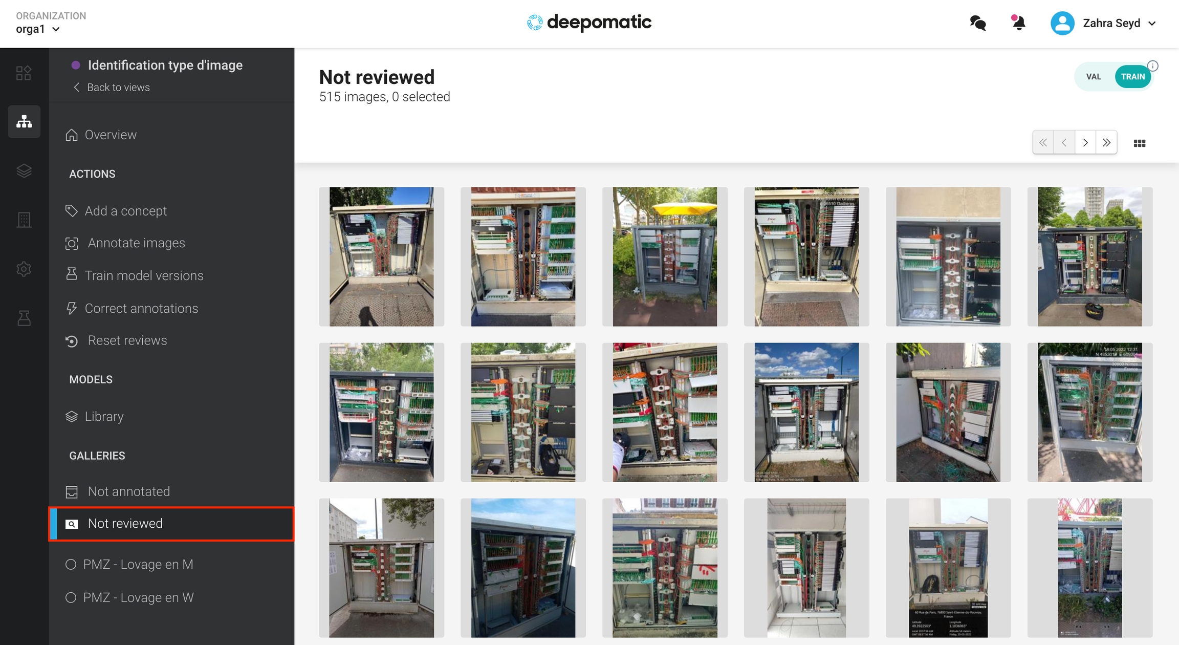 The "Not reviewed" gallery is designated for this purpose. In this gallery, one can find the images that have been annotated but are not yet reviewed.