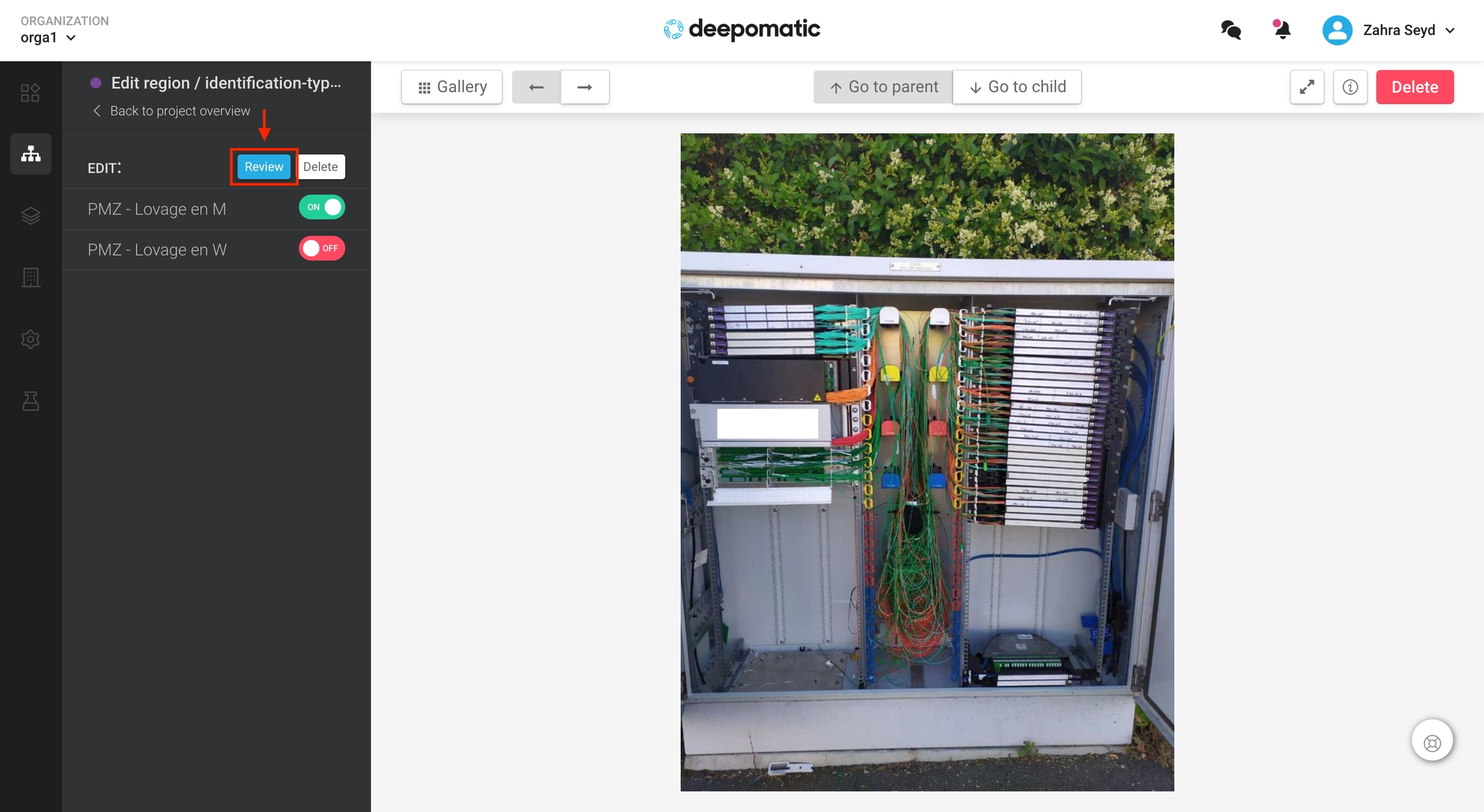 Given an annotated image, once the reviewer is certain about the conformity of the annotation can review it by clicking on the designated 'review' button.