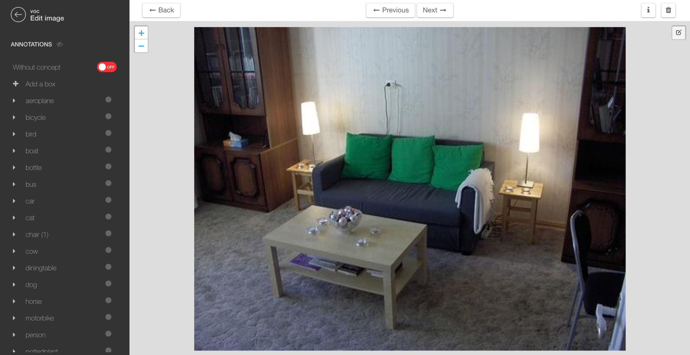 On this view, you can also edit the annotations associated with the image.