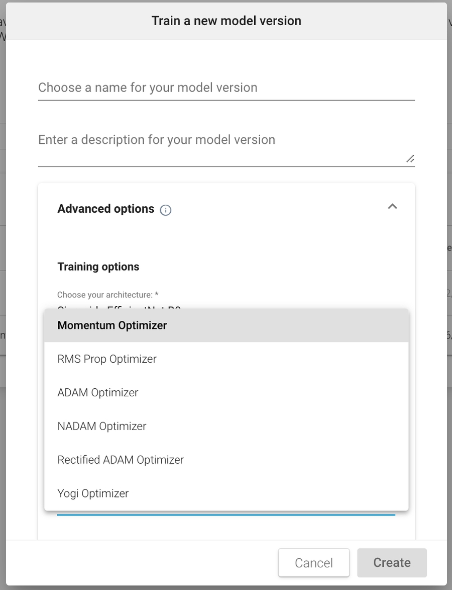 In the platform we have set by default, for each architecture, a given optimizer with a given learning rate, which were a result of a benchmark campain.