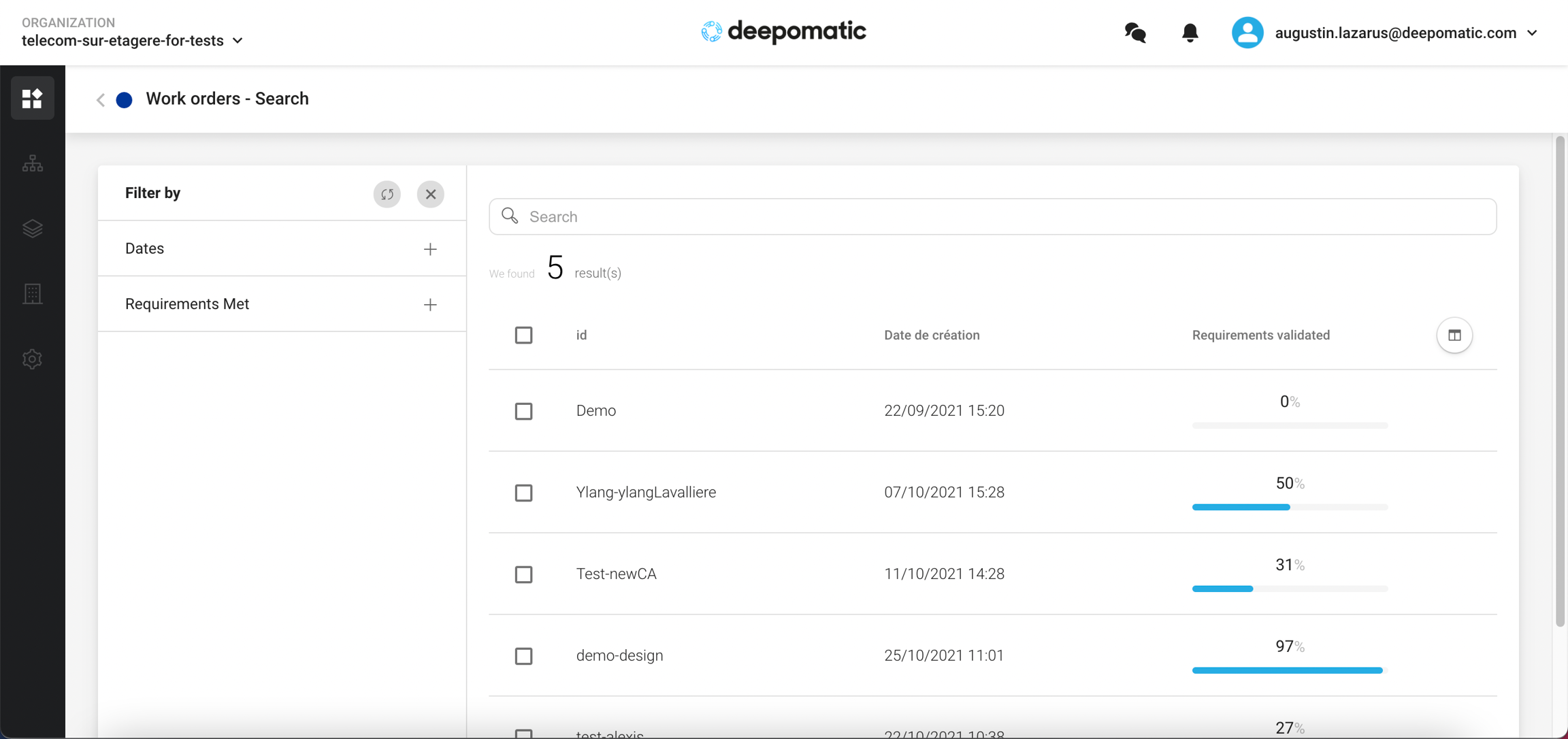 When accessing an Explore solution, the user gets a list of all work orders that occurred for the last 3 months within its organization. Then, he can either perform a search by typing a keyword in the search bar or by playing with filters in the left panel.