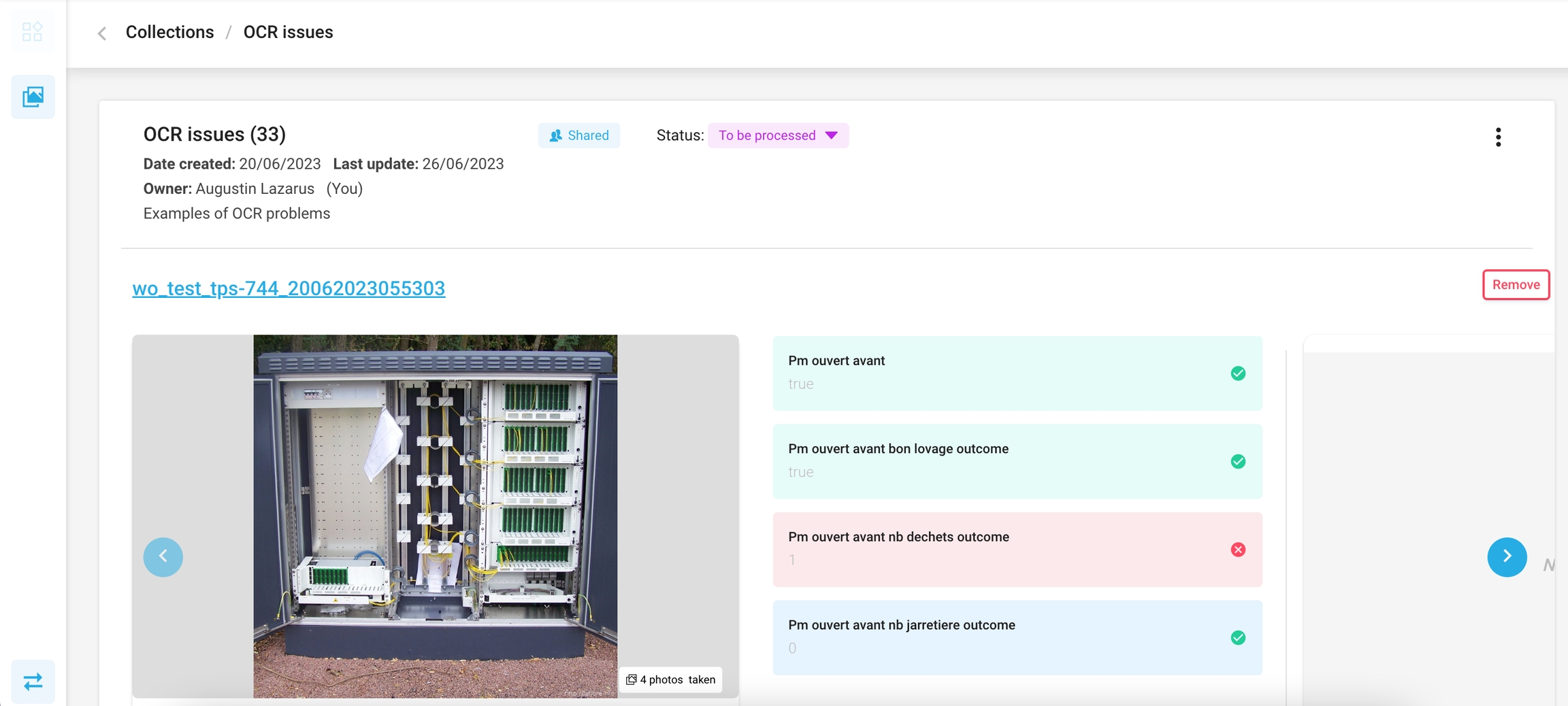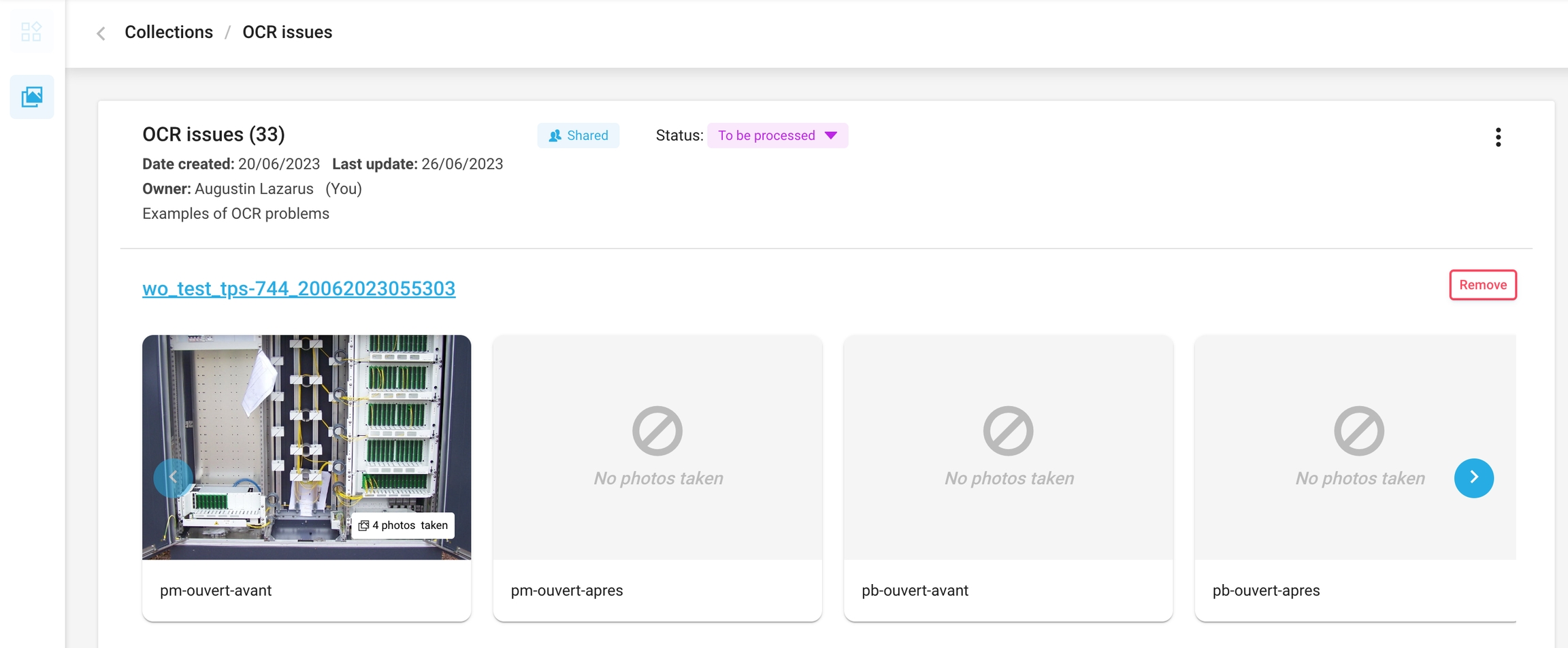 For all the collections to which you have access, you can consult the details which are basically the photos and the corresponding analysis.