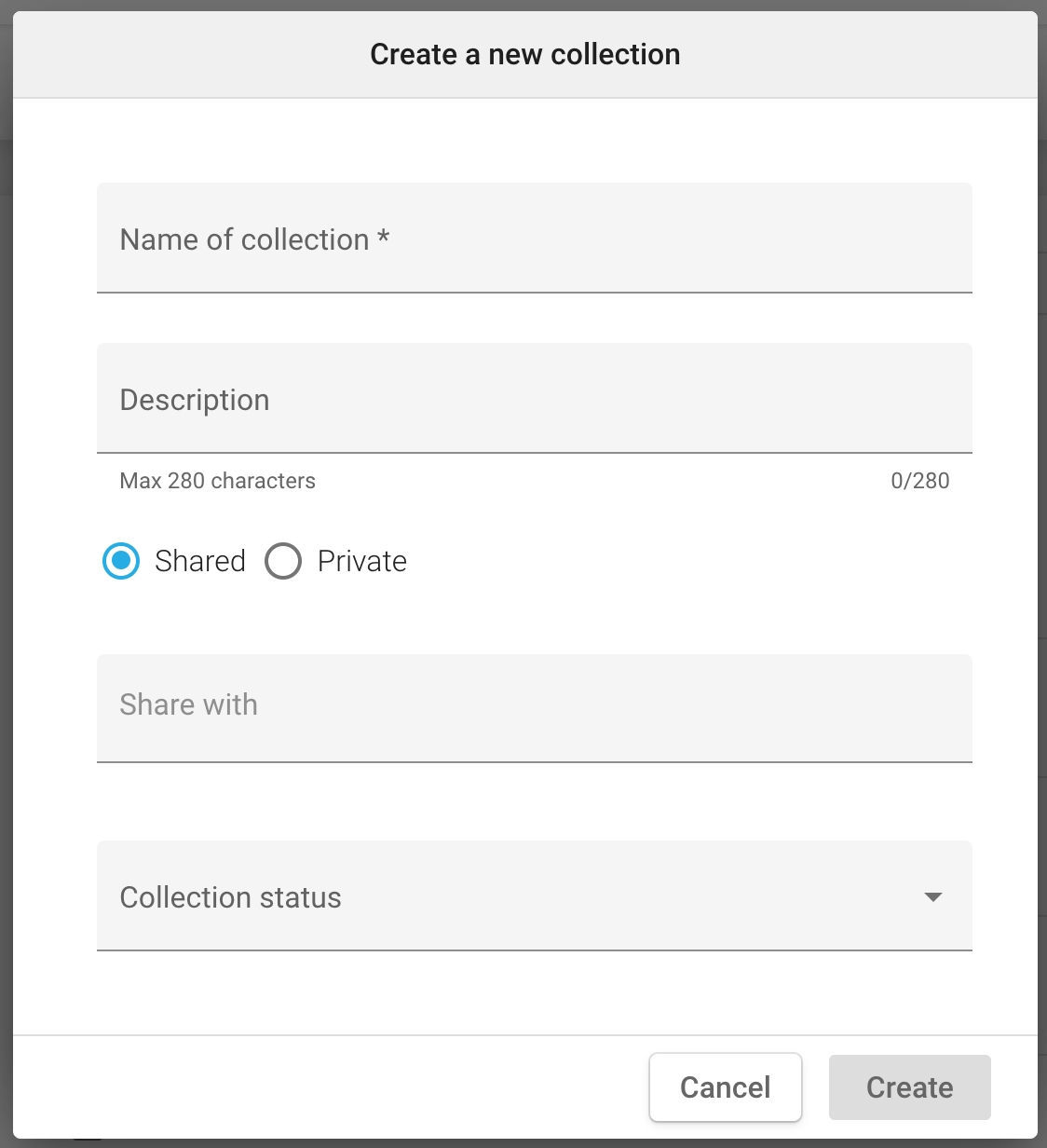 Now that you have created at least one collection, it becomes available in a dedicated section. All collections are grouped under 2 tabs depending on whether they are shared or not.