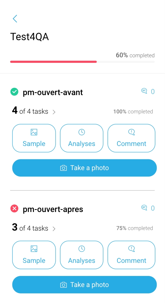 Finally, throughout the work order, the technician can visualize its progress thanks to the completion bar which is updated each time a new photo is uploaded.