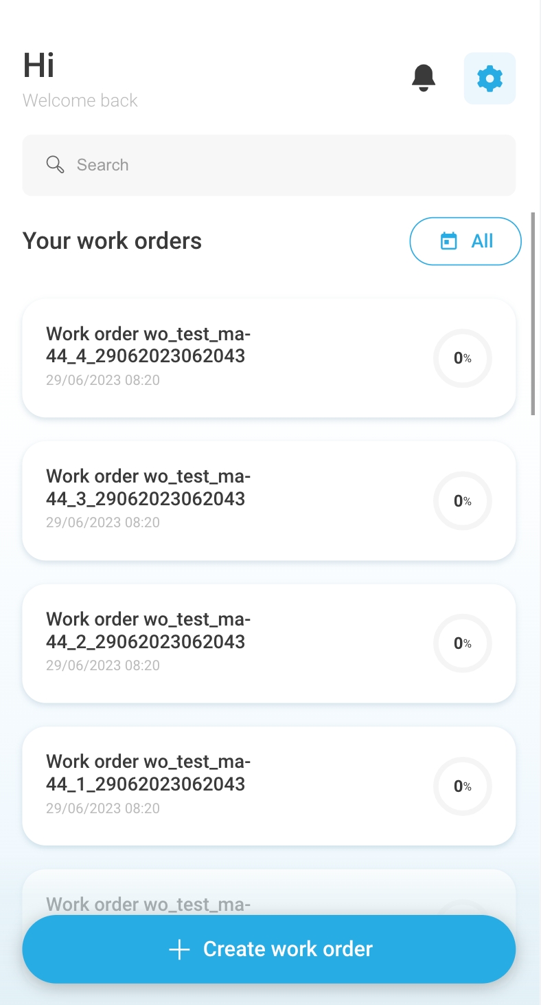 When accessing Deepomatic mobile application, technicians can visualize a list of work orders that have been assigned to them in order to be completed