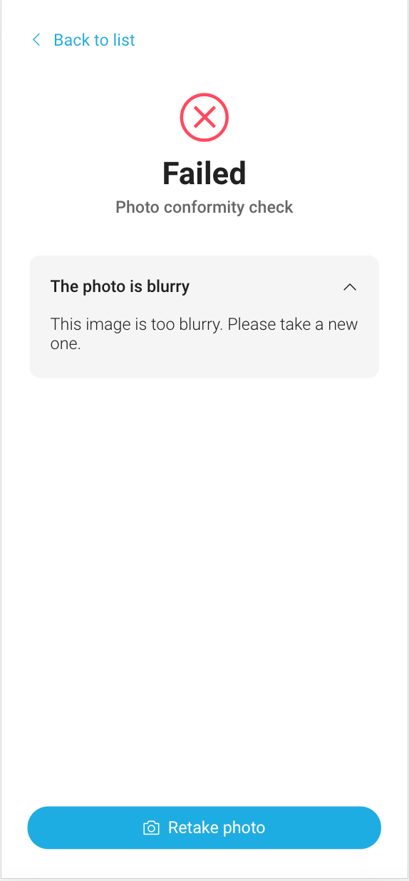 There is now a specific code to distinguish each data conformity algorithm in the API responses (eg. for duplicate errors the code is 1 whereas for blur errors the code is 2).