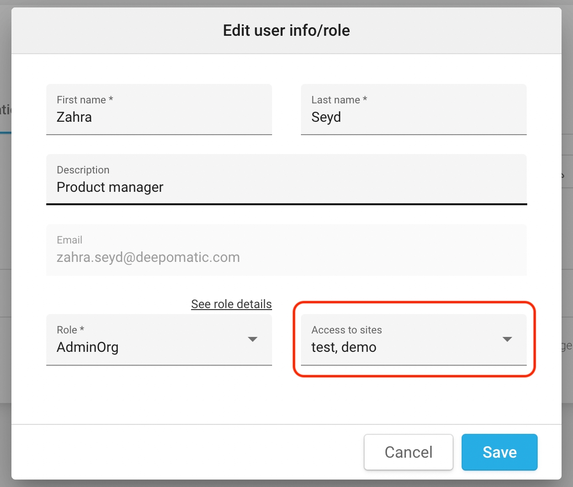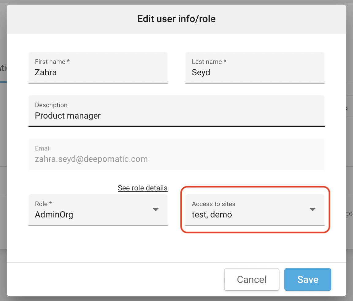 Within the user management settings, you are able to grant the user access to existing mobile apps in an organization. You simply need to mark particular sites from the list of available ones.