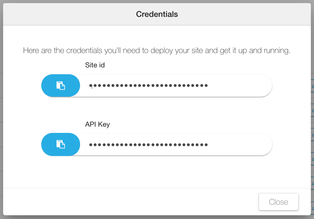To be able to set up and get your local site up and running, you need its credentials. Yo get them, click on the options button for the corresponding site, and then on Credentials.
