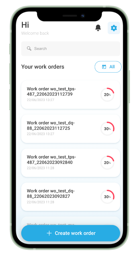 To help field workers easily retrieve specific work orders, a search bar has been added in the mobile application.