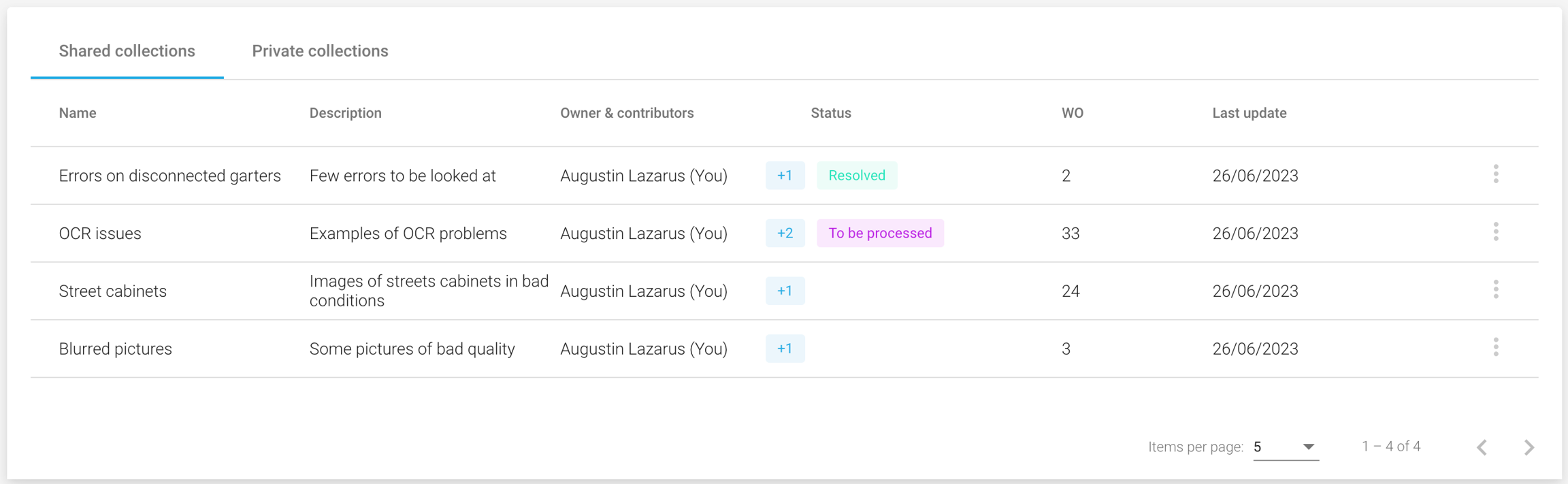 Consult work orders (photos, analysis) on a specific collection