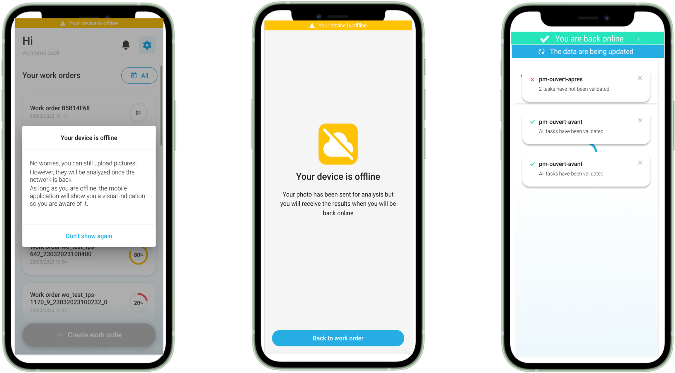 A new experience has been designed to better guide technicians in their use of the mobile application when there is no network. The most important updates are the following ones: