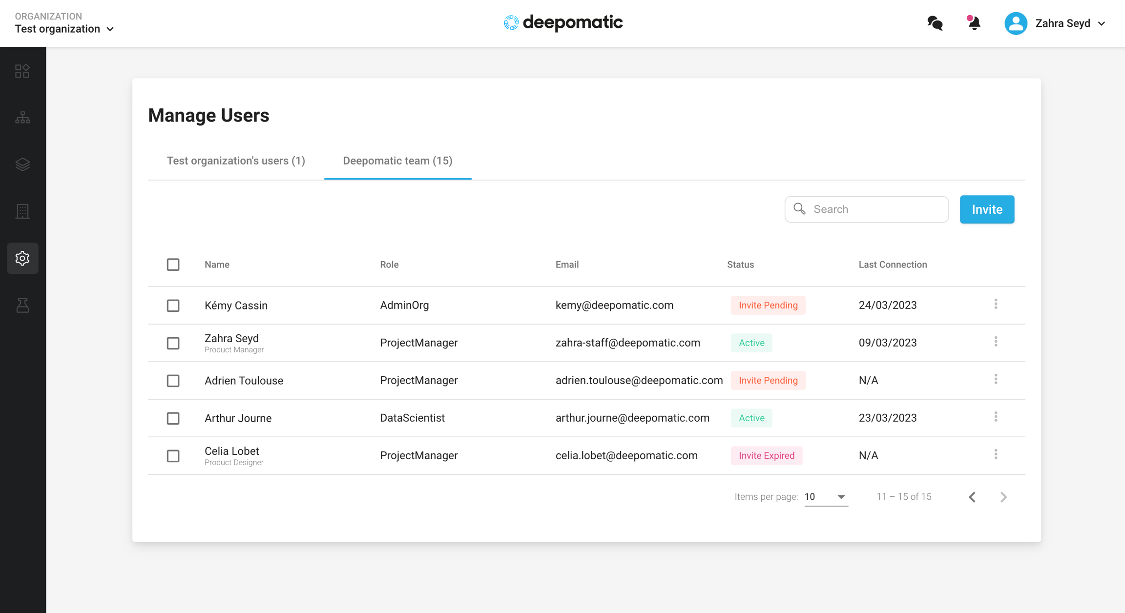 Manage the users and their roles within the organization